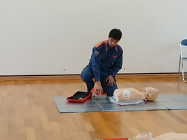 心肺蘇生とは、心肺停止状態の傷病者に対し、胸骨圧迫や人工呼吸、AEDの使用方法など、救命に必要な応急手当を学ぶ講習会です。