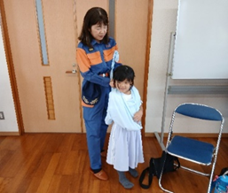 西春日井広域事務組合から消防署員のご指導の元、心肺蘇生、AED、三角巾の使用方法を短い時間の中、学ぶ事ができました。