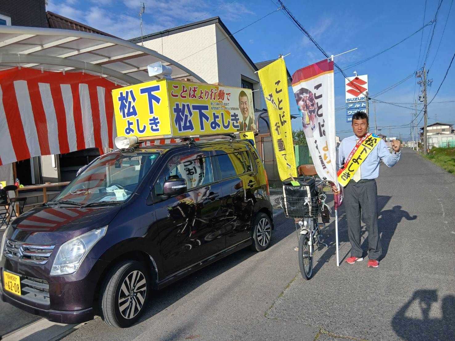 選挙期間(7日間)共に選挙時間、1分1秒足りとも無駄にはしません。残りの期間、体力も気力もギリギリの戦いになるかと思いますが、「絶対に形にする」という熱い想いを持ち、言葉を超えて届けて参ります。どうか松下よしきに一票と言う【バトン】を繋ぐ架け橋役として、松下よしきを走り続けさせてください。